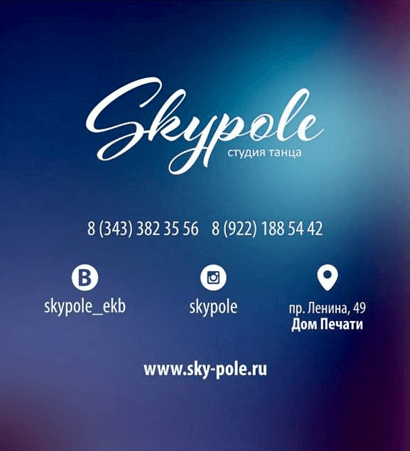 Добро пожаловать в современную школу танца Sky Pole. Все наши направления - это лучшая альтернатива Pin-Up Все занятия проводятся для раскрытия в вас новых границ вашего тела, тренировки на результат и прогресс, для удовольствия и саморазвития, для каждого, кто хочет выйти за рамки своих возможностей. Вы прокачаете себя с удовольствием. Предлагаем стать частью команды и попробовать себя в нашем творческом пространстве. Нам не важен уровень вашей физической подготовки, вес, возраст, опыт тренировок - у нас есть занятия любого уровня сложности. Мы не ограничиваем вас в выборе направлений - предлагаем целый спектр дисциплин, которые возможно посещать по одному абонементу. Мы создавали эту студию больше 10 лет, накопили огромный опыт и сегодня Sky Pole - это это индивидуальный подход, положительные эмоции, хорошее настроение и личные подвиги! Все наши тренировки проходят с целью укреплению здоровья нации, пропаганды здорового образа жизни и формирования отношения к занятиям спортом как одной из значимых общественных ценностей.
